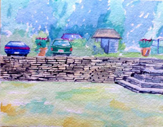 I am in a practice mode. Making small paintings of just 18 X 25 cms. Trying out figures, structures, still-life and so on. Here is one of them. Perspective is little off but the door is what I liked the most.